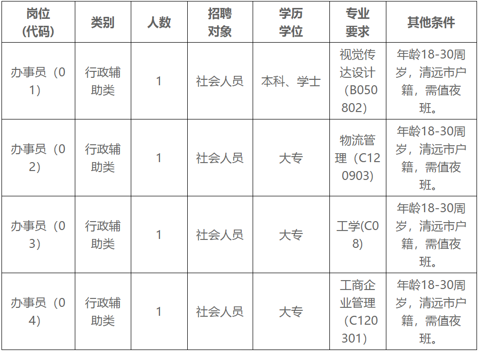 根據(jù)工作需要,清遠(yuǎn)市清城區(qū)源潭鎮(zhèn)人民政府面向社會(huì)公開招聘專項(xiàng)工作聘員4名,F(xiàn)將有關(guān)事項(xiàng)公告如下: